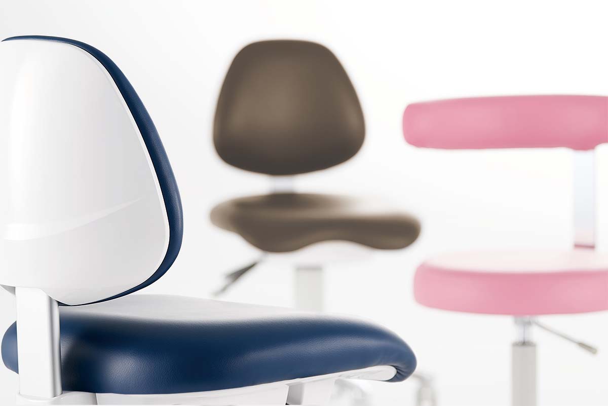 The colors come in four themes: warm, cool, earth and vitamin. Any choices from these leather colors should match the interior appointments of your clinic. The upholstery can be chosen from seamless, seam and luxury type.