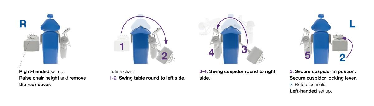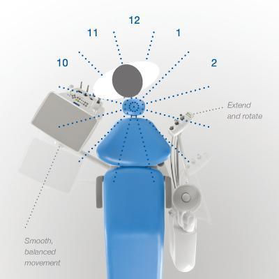 Simulataneous preparation and consultationsaves valuable working time between every Patient.The uniquely perfect clean and preparation arrangement to the rear of the chair also improves lines of communication between Operator and Assistant.